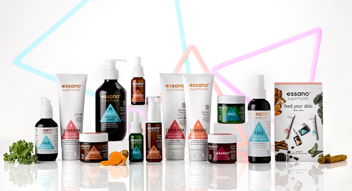 Essano have come out with a new superfoods skincare range. The superfoods range combines the natural power of raw, organic, cold pressed plant extract with Liposomal technology to ensure maximum potency for the most effective skin-enhancing results. The three superfoods they’ve opted to use in the range are cinnamon, turmeric & kale.